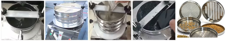电磁振动筛工作时,采用电磁振动器用作振动源,振动经底座传递至底座上由粗到细排列的一组标准试验筛。同时,安装在下部的振动电机对物料进行筛选和筛分,物料在标准试验筛的筛面上振动,使小于筛孔尺寸的物料颗粒筛入下层试验筛,并逐层筛分,每层试验筛的颗粒尺寸相同,从而实现不同粒径物料的分离。